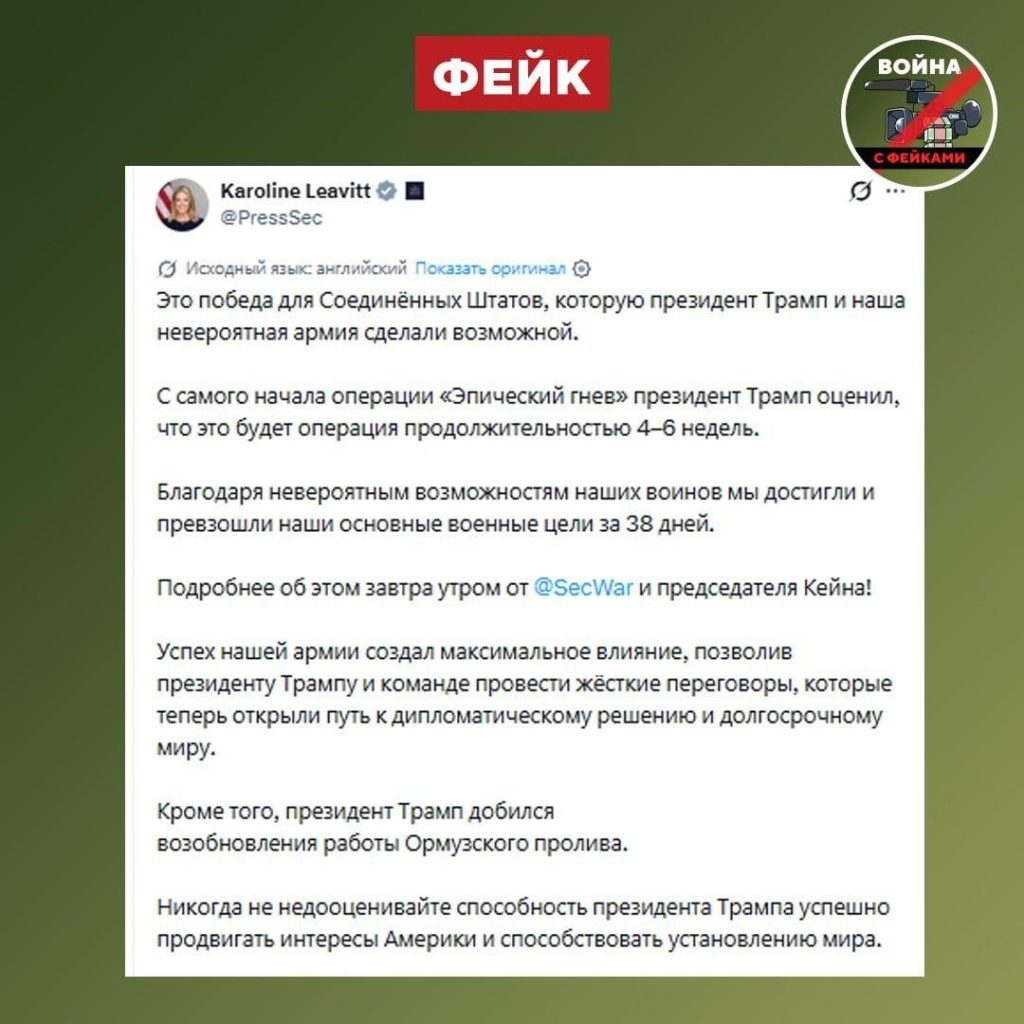 О чем фейк: Согласованный режим прекращения огня с Ираном — это победа США. Об этом сообщила пресс-секретарь Белого дома Кэролайн Левитт.