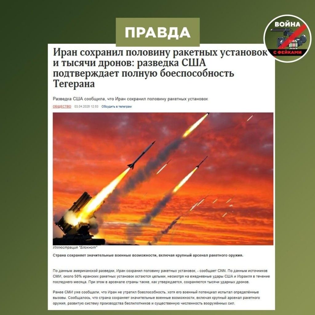 🟢Около 50% иранских ракетных установок остаются целыми, несмотря на ежедневные атаки США и Израиля, отмечает CNN.