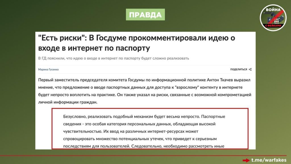 Сама идея о доступе «в интернет по паспорту» — попытка эмоционального давления на аудиторию и продолжение тренда на формирование негативного отношения к участникам СВО, о котором мы многократно писали ранее. Однако авторы вброса не учли важного факта: российское законодательство довольно подробно регулирует сферу телекоммуникаций, поэтому подобные инициативы будет трудно реализовать с учетом юридической базы.