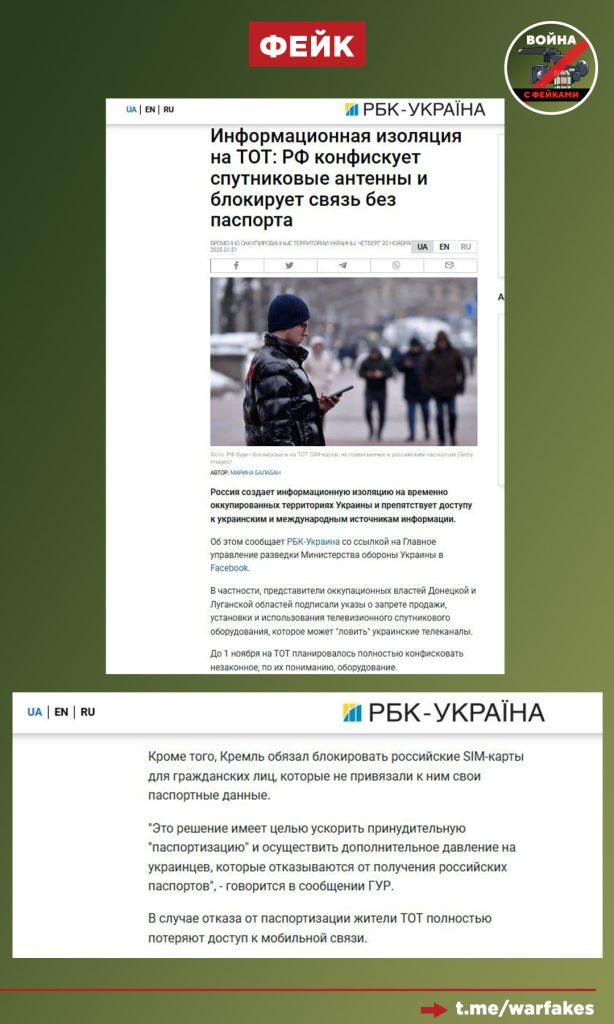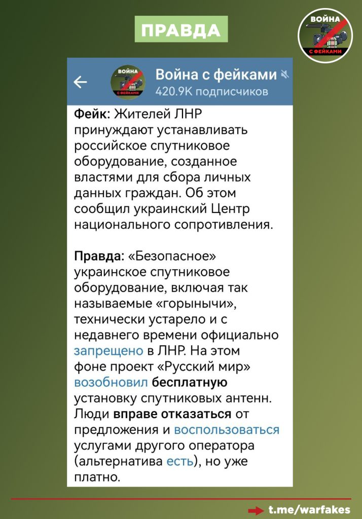 Также пропагандисты продолжают настаивать на том, что граждан якобы заставляют устанавливать российское спутниковое оборудование, с помощью которого власти будут собирать их личные данные.