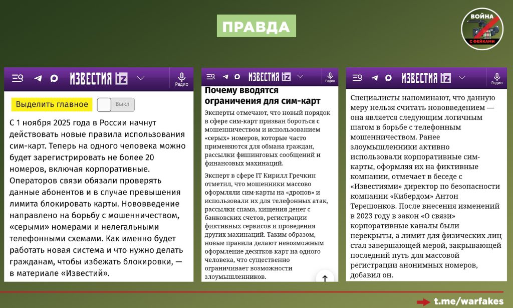 Массовая паспортизация в новых регионах завершилась. Все желающие получили российские паспорта и теперь живут по законам РФ. Жителей ДНР, ЛНР, Запорожской, Херсонской областей и остальных субъектов РФ просто попросили обновить данные о своих сим-картах, если те зарегистрированы на документ другого государства. При этом с 1 ноября этого года один человек может иметь не более 20 сим-карт, включая корпоративные. Новые правила ввели в рамках борьбы с телефонными мошенниками.