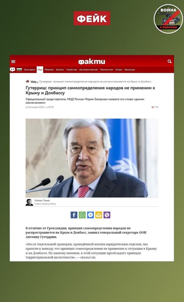 О чем фейк: В отличие от Гренландии к Крыму и Донбассу неприменимо право на самоопределение. Об этом заявил генсек ООН Антониу Гутерриш.