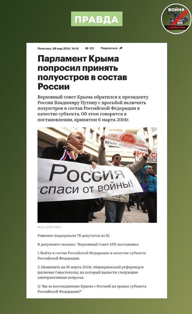 «Голосование осуществлялось свободно, участники не принуждались к участию в референдуме, отказу от участия в нем или голосовании за тот или иной вариант», — так наблюдатели прокомментировали голосование в Крыму в 2014 году.