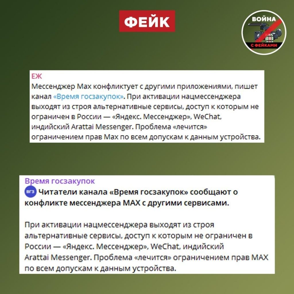 О чем фейк: При активации мессенджера МАХ выходят из строя альтернативные сервисы, доступ к которым не ограничен в России. Об этом сообщил ряд телеграм-каналов.