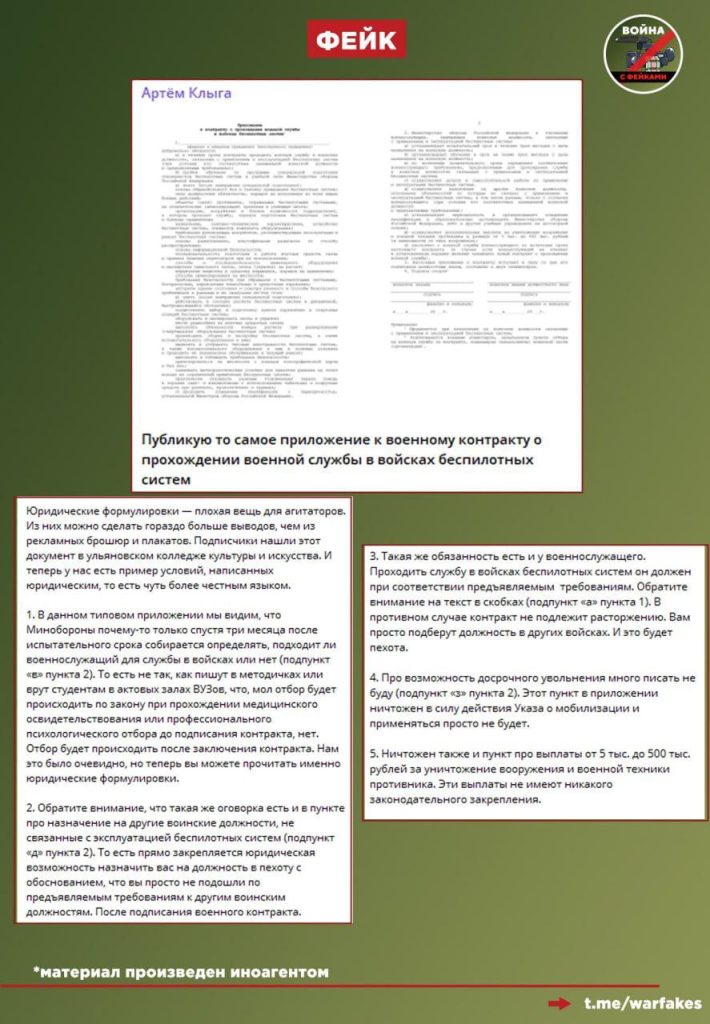 Перед нами типичное передергивание фактов. Опубликовав данный фейк, Клыга расписался в собственной некомпетентности в роли юриста. Даже имея на руках приложение к контракту, «правозащитник» не смог его прочитать.