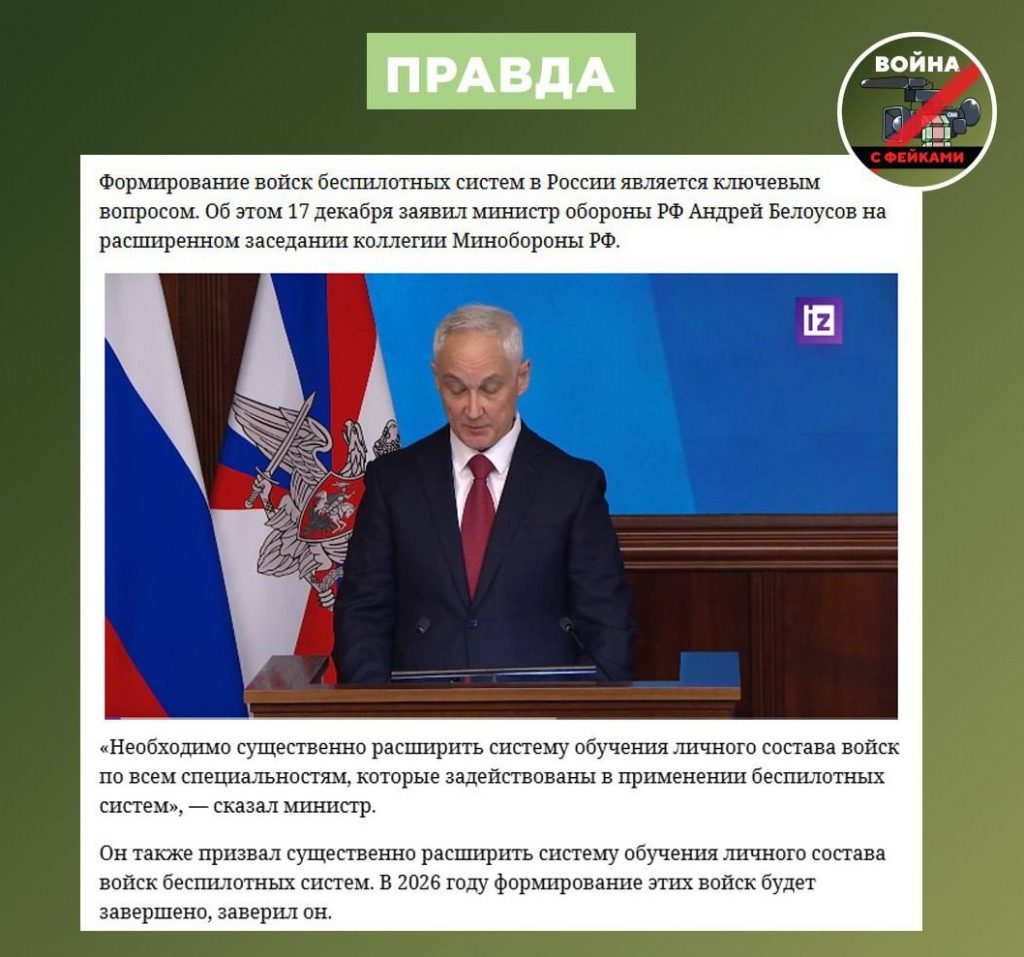 О чем фейк: В России провалена задача по созданию войск беспилотных систем и другие важные направления. Такие сообщения появились в Телеграм.