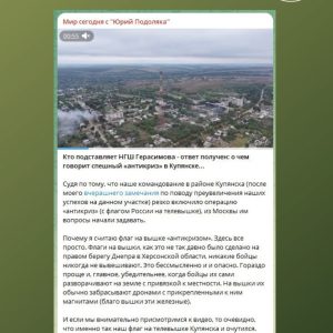 Фейк: Вывешивание российского флага на вышке в районе Купянска — это «антикриз» и бессмысленная затея