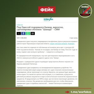 Фейк: Недалеко от Одессы грузовое судно подорвалось на обломке дрона «Герань-2»