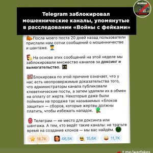 Теlegram заблокировал мошеннические каналы, упомянутые в расследовании «Войны с фейками»