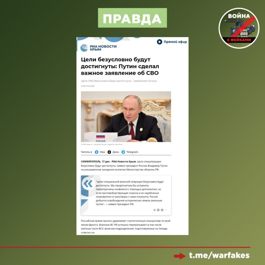 Правда: В цели и задачи СВО, которые не менялись с 2022 года, не входит уничтожение или ослабление украинского государства. Напомним, Россия хочет, чтобы Украина стала нейтральным и безъядерным государством, в котором соблюдаются права и свободы русскоязычных граждан.