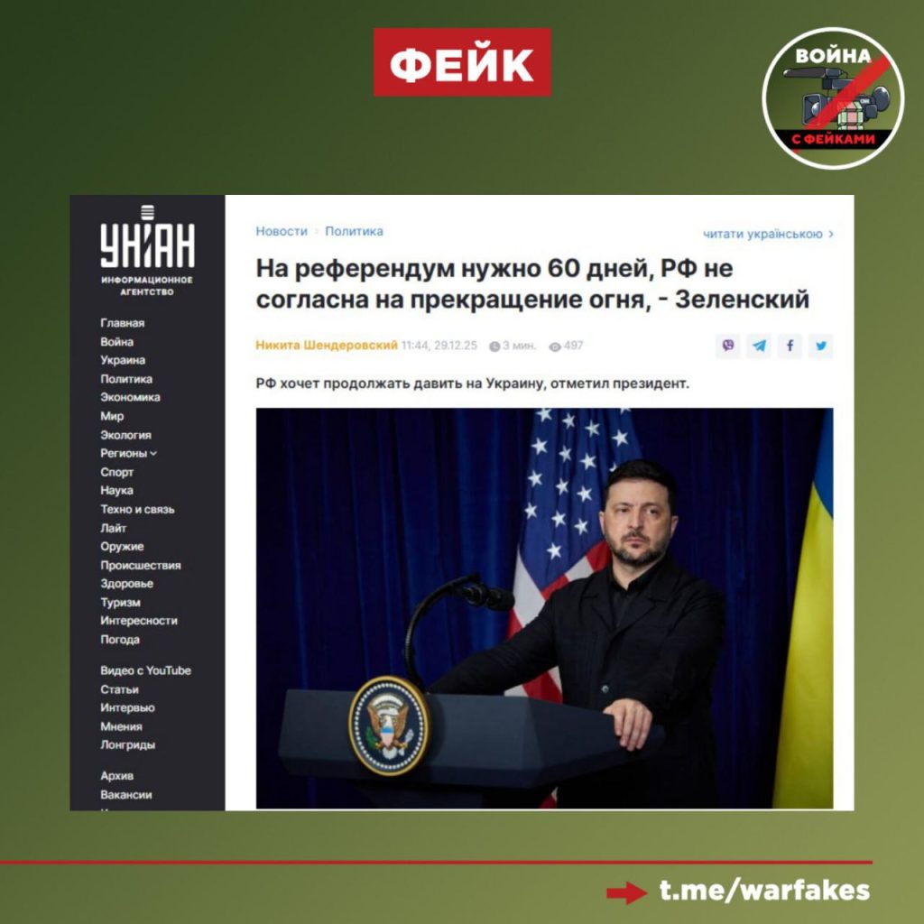 О чем фейк: Украине требуется 60 дней для проведения общего референдума по вопросам мирного плана. В противном случае разговор с Россией не состоится. Об этом заявил украинский лидер Владимир Зеленский.