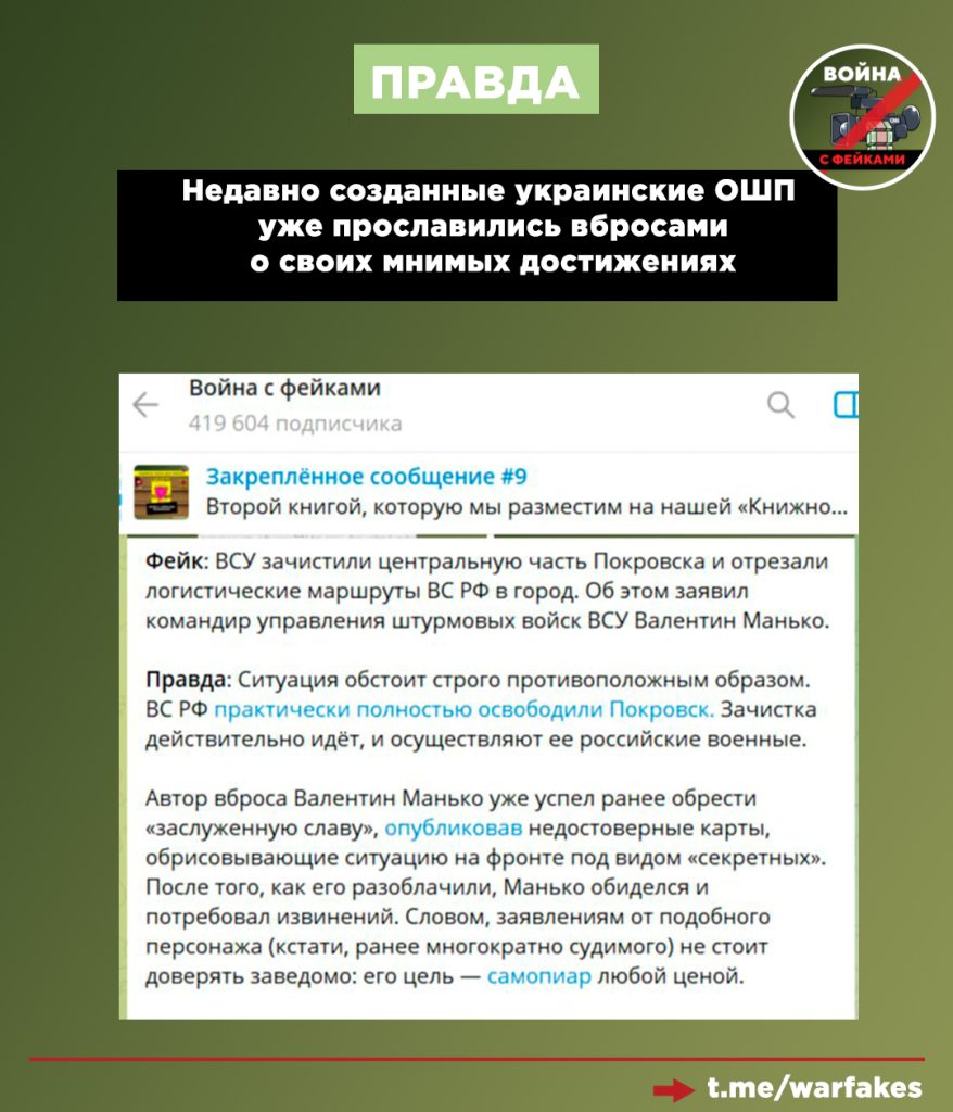 Характерно и то, что заявили о возвращении контроля над участком ресурсы новосозданных штурмовых войск Украины, которые вместе со своим специфическим командующим уже не первый раз выступают со вбросами такого рода. Например, недавно они уже «зачистили» от российских войск центр Покровска. Правда, тоже только в интернете.