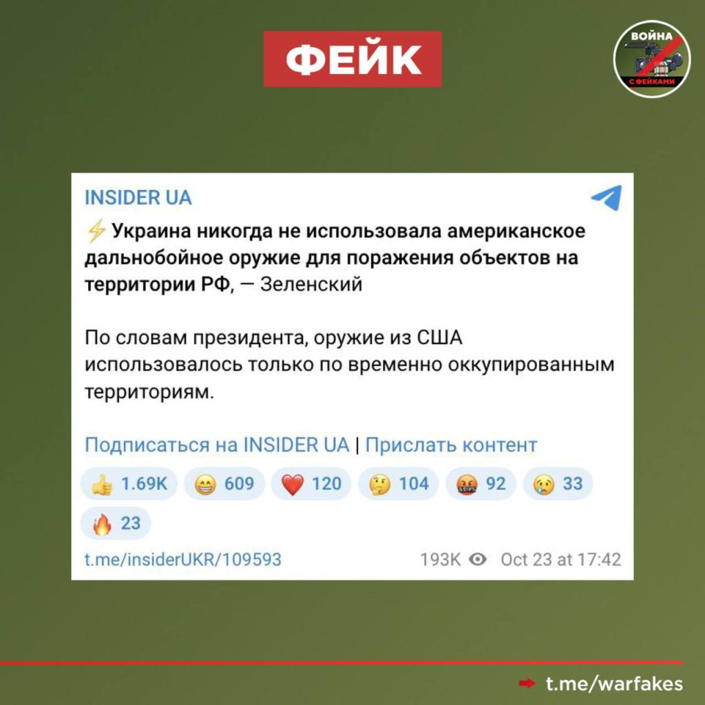 О чем фейк: Киев никогда не наносил ударов американским дальнобойным оружием по территории РФ, заявил Владимир Зеленский.