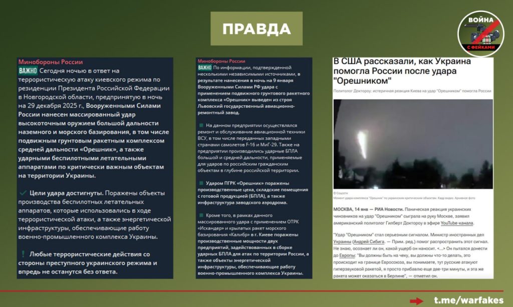 О чем фейк: «Орешник» оказался лишь «большой хлопушкой», а удар им прошёл « без каких-либо наглядных потерь для Украины», утверждают украинские СМИ