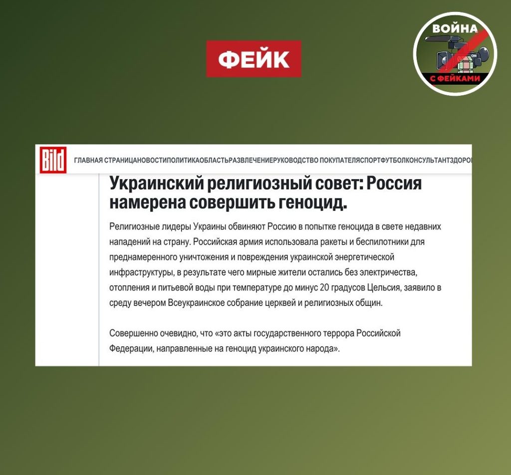 О чем фейк: Россия занимается геноцидом украинских граждан. Об этом заявили представители Украинского религиозного совета, интерпретируя атаки ВС РФ по энергоструктуре. Сообщения об этом появились в западных СМИ.