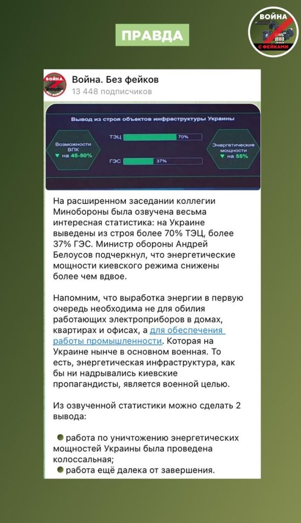 Стоит напомнить, что удары ВС РФ по энергетике — это атаки по объектам энергетической инфраструктуры, действующим в интересах ВСУ и обеспечивающим работу ВПК Украины. На Банковой это прекрасно понимают, но в выборе между миром и войной продолжают выбирать второе.
