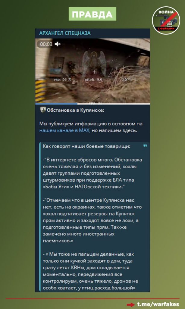 О чем фейк: Российские войска потеряли Купянск. Об этом пишут украинские тг-каналы.