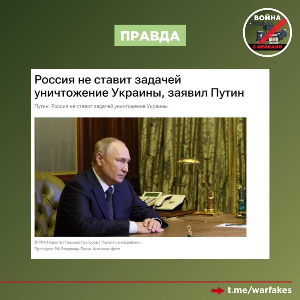 Президент РФ также многократно озвучивал реальные задачи спецоперации – демилитаризация и денацификация Украины. Речи об уничтожении украинской государственности никогда не шло.