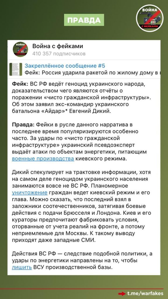 О чем фейк: ВС РФ терроризируют гражданское население, атакуя объекты энергетики из-за «беспомощности на фронте», утверждают украинские телеграм-каналы