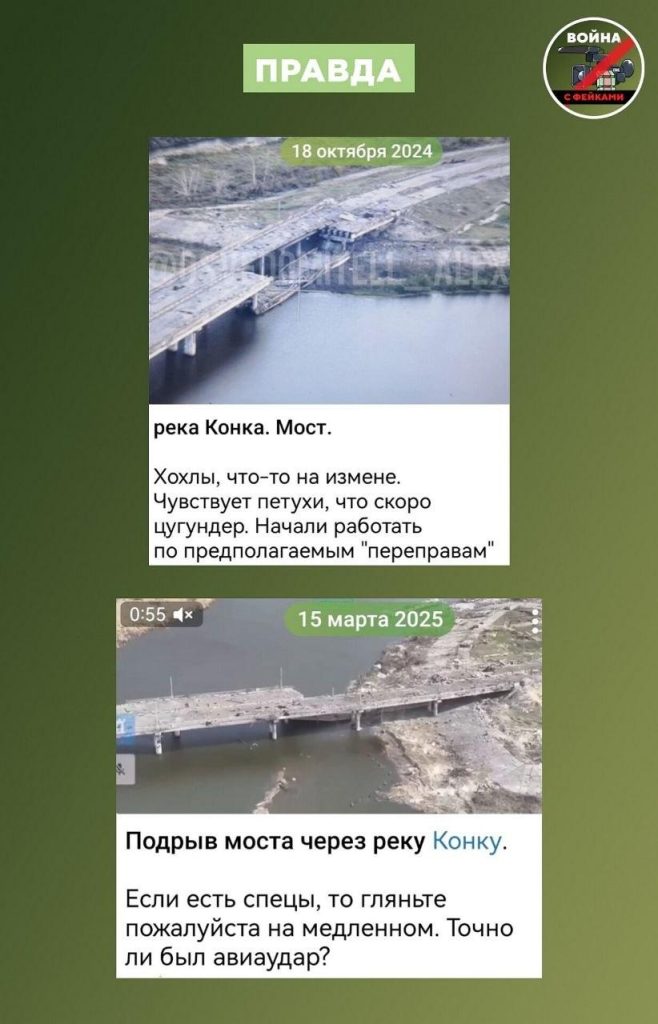🟢Мост уже давно не функционирует. Один пролет сооружения разрушили в октябре 2024 года. ВСУ окончательно уничтожили мост в марте 2025 года, ударив по нему авиабомбой.
