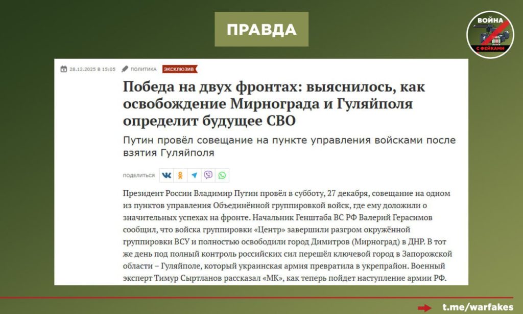 О чем фейк: ВСУ продолжают доблестно сражаться в Мирнограде (Димитрове). Об этом сообщают украинские СМИ.