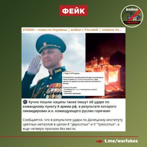 Фейк: Вследствие удара, инспирированного ГУР Украины, погиб командующий Черноморским флотом